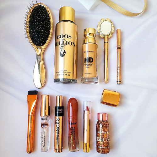 پک لوازم آرایشی کامل عروس 👰 طلایی ( باکس لوازم آرایشی / هدیه ولنتاین )ناموجود