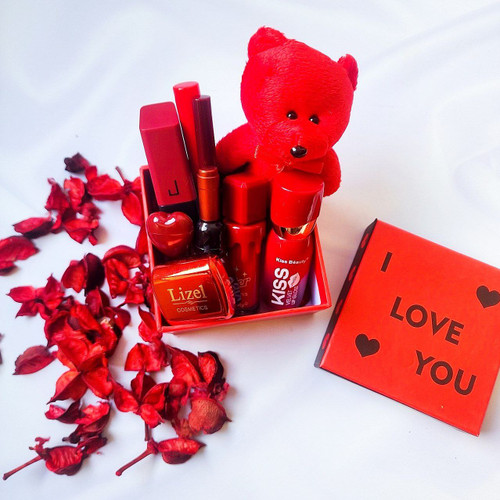 پک ( باکس ) لوازم آرایشی قرمز خرسی ❤️🧸💄 مناسب هدیه ولنتاین / روز عشق / هدیه تولد / سالگرد ازدواجناموجود