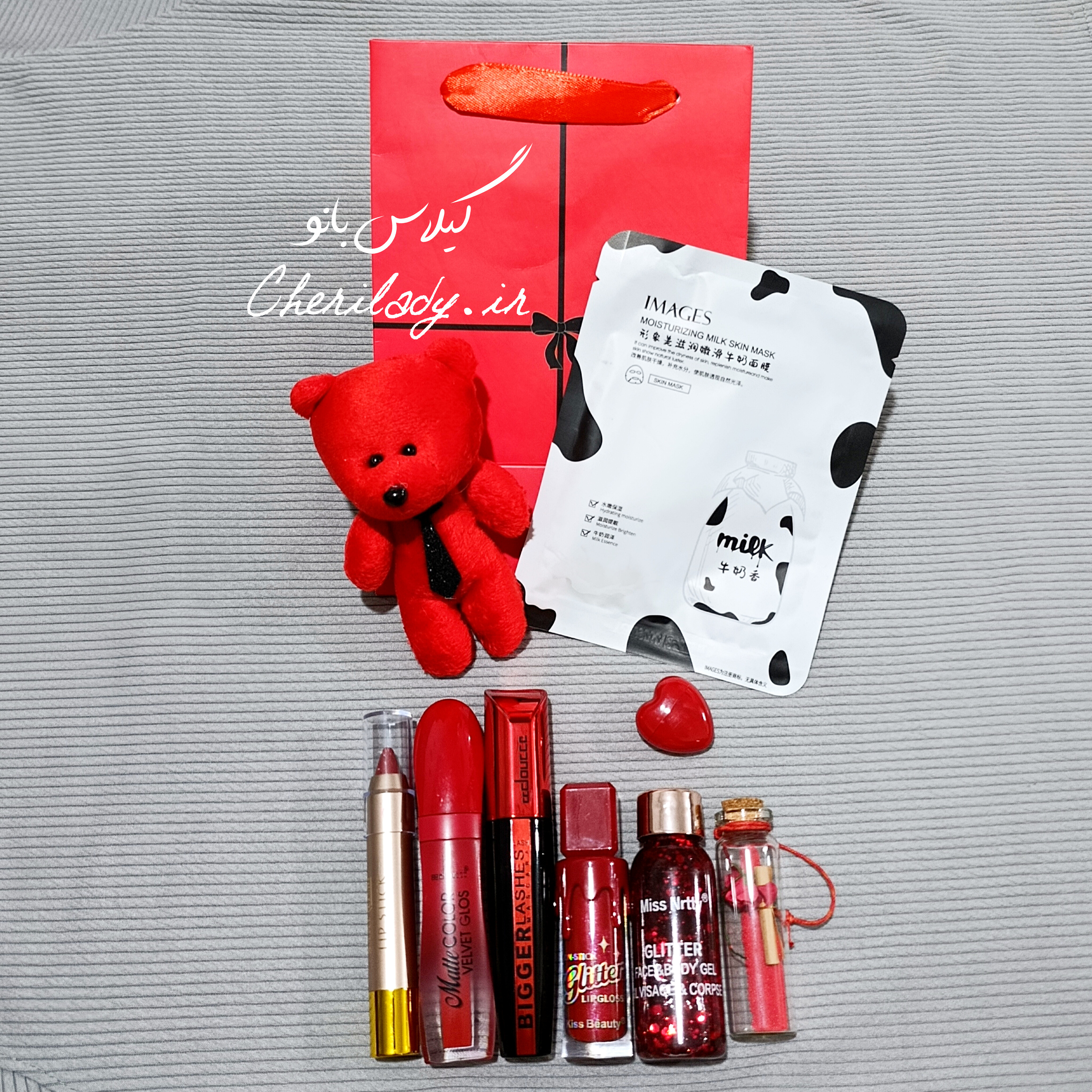 پک اقتصادی لوازم آرایشی قرمز خرسی ❤️🧸💄 مناسب هدیه ولنتاین / روز عشق / هدیه تولد / سالگرد ازدواج