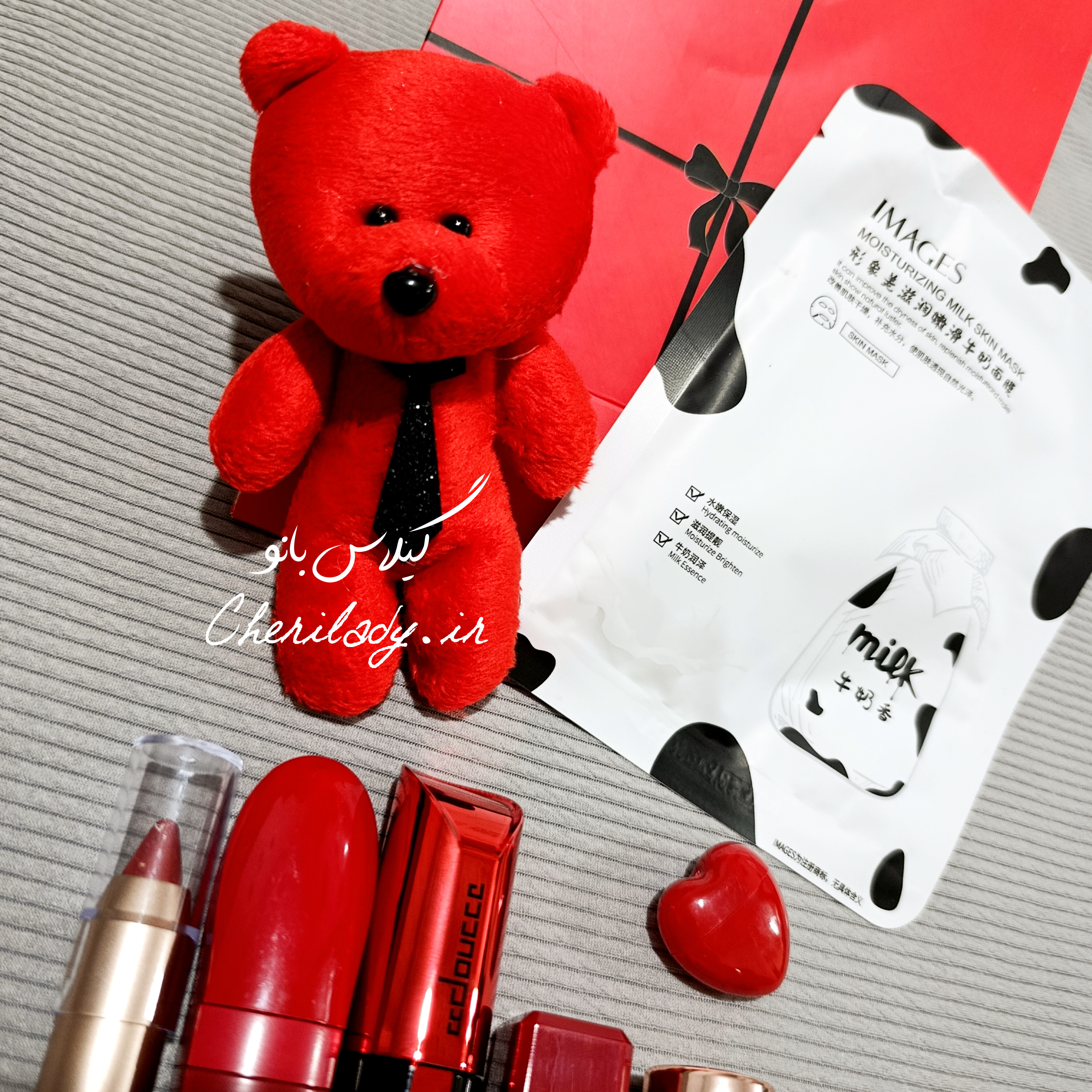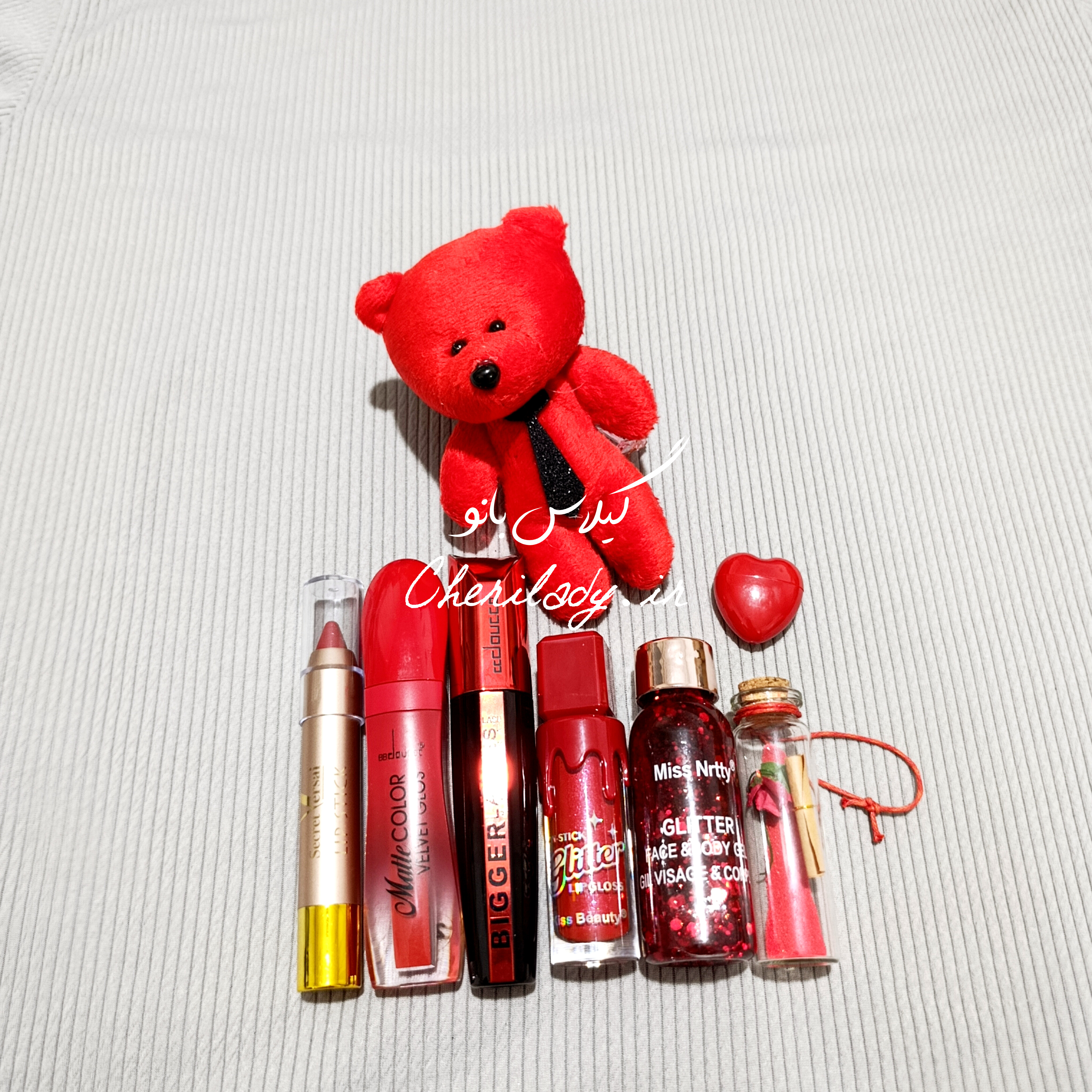 پک اقتصادی لوازم آرایشی قرمز خرسی ❤️🧸💄 مناسب هدیه ولنتاین / روز عشق / هدیه تولد / سالگرد ازدواج