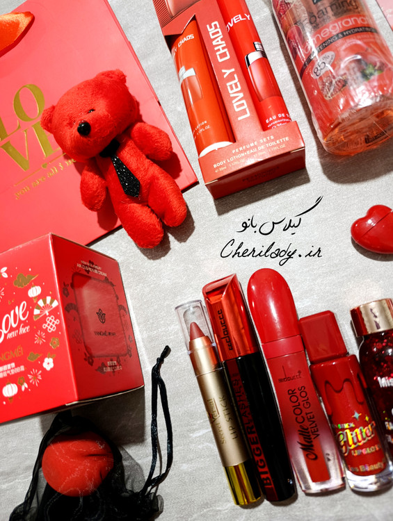 ترکیبی از عشق، زیبایی و درخشش قرمز…🧸💄