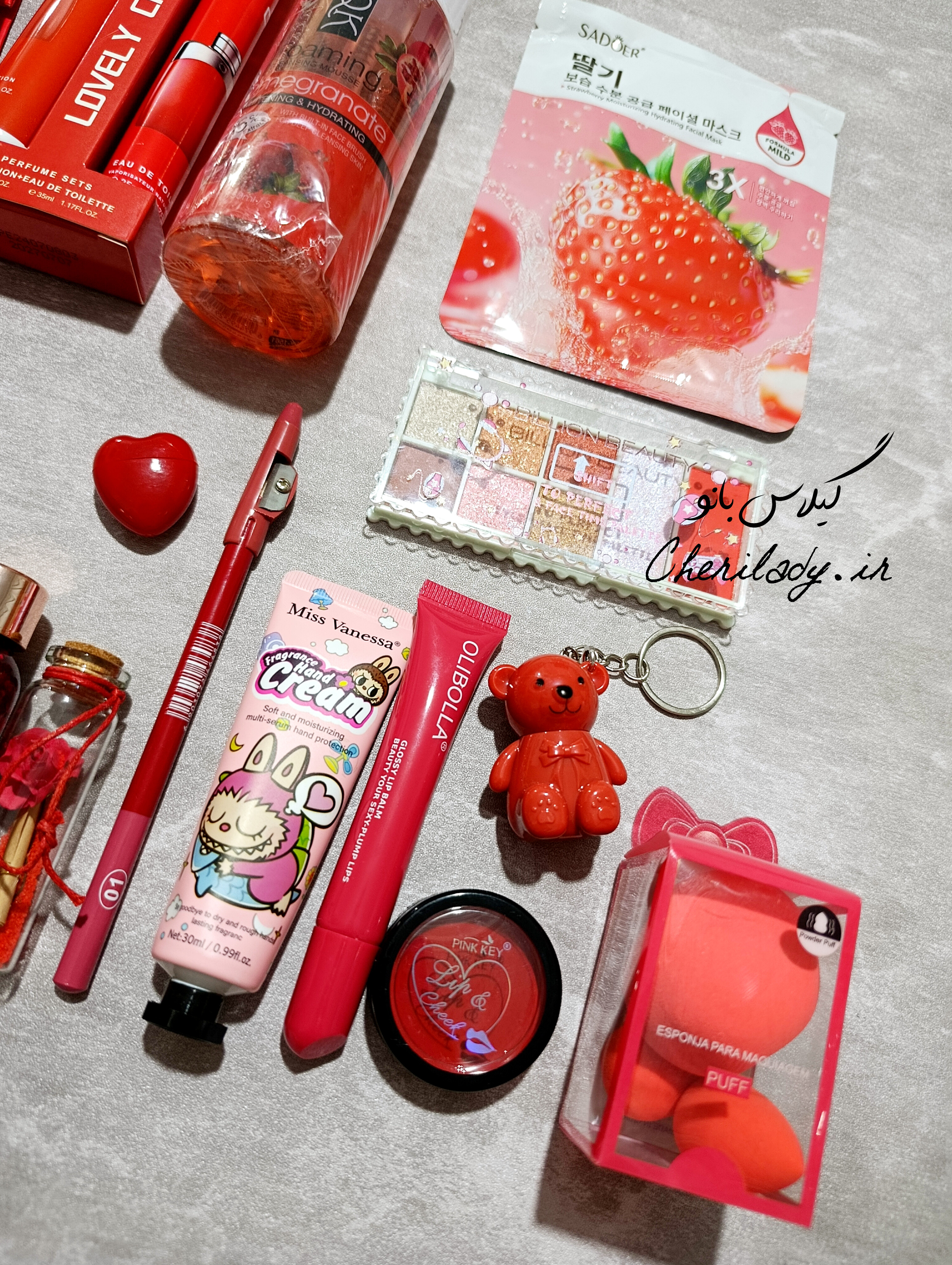 پک ( باکس ) لوازم آرایشی قرمز خرسی ❤️🧸💄 مناسب هدیه ولنتاین / روز عشق / هدیه تولد / سالگرد ازدواج