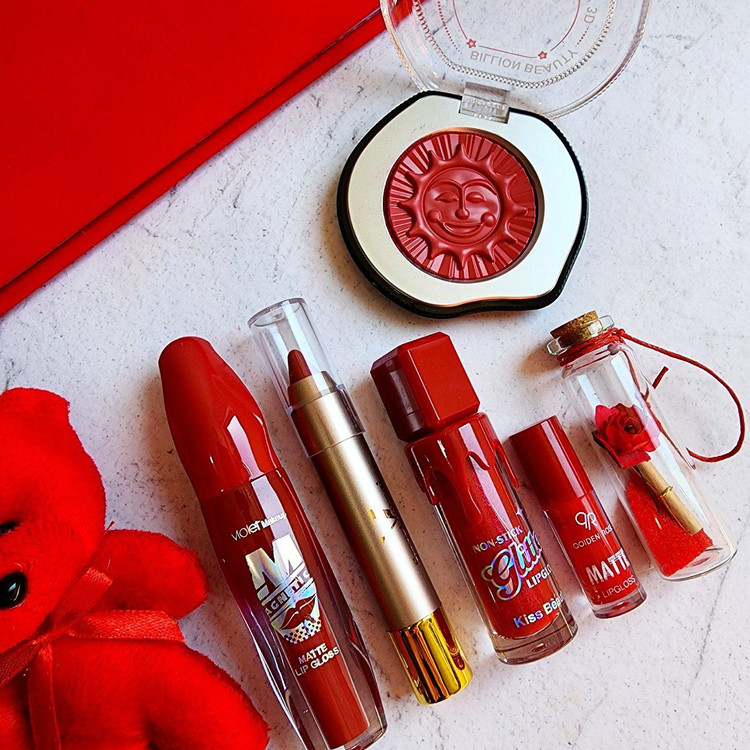 پک لوازم آرایشی قرمز خرسی مناسب هدیه ولنتاین / روز عشق / تولد / سالگرد ازدواج و ...